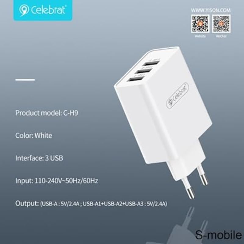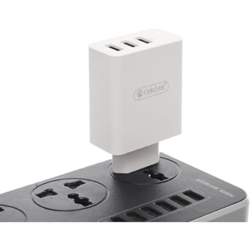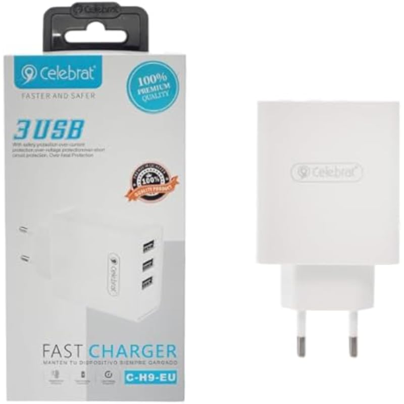 Celebrat - شاحن من سيليبرات بتقنية USB، متوافق مع الأجهزة الذكية، بثلاثة منافذ مع حماية من الحرارة الزائدة والدائرة القصيرة