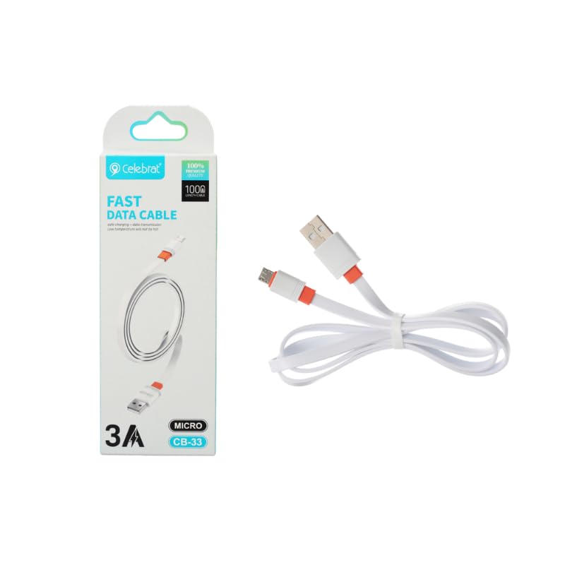 Celebrat - كابل CB-33 USB إلى Micro USB بقدرة شحن سريع 3 أمبير وسرعة نقل بيانات 480 ميجابت/ثانية، بطول 1 م، بتصميم سلك مسطّح من سيليبريت باللون الأبيض