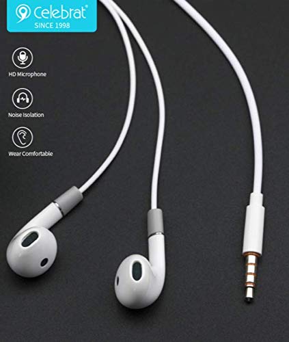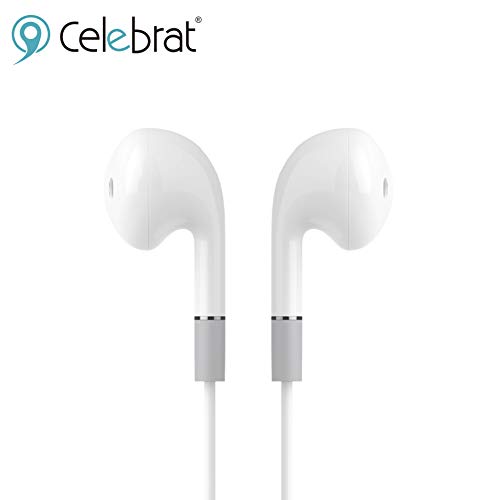 Celebrat - سماعة أذن دي اس سمارت G8 بسلك مريحة للارتداء مع ميكروفون وصوت HD عالي الدقة ومقبس 3.5 ملم من سيليبريت لون أبيض