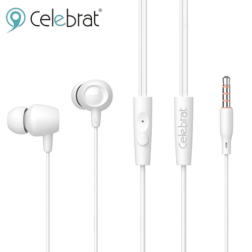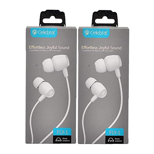 Celebrat - سماعات للاذن فلاي-1 من سليبريت مع عزل للضوضاء وصوت مبهج بدون مجهود 3.5 ملم مجموعة قطعتين - ابيض سلكي في الاذن