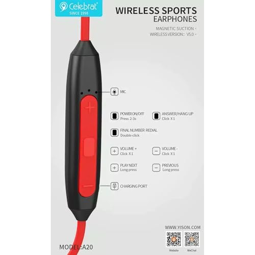 Celebrat - سماعات أذن رياضية مغناطيسية لاسلكية (بلوتوث) لتشغيل الموسيقى والاتصال والتعلم الإلكتروني والألعاب ومشاهدة الفيديو والمدونات الصوتية والكتب الصوتية والتسجيل والاجتماعات من سيليبريت (A20، أسود)