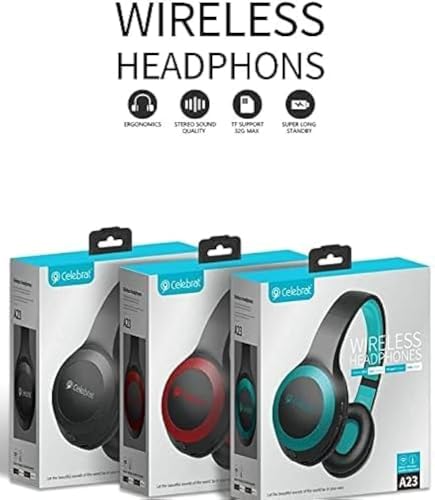 - سماعة رأس بلوتوث لاسلكية ستريو صوت نقي Celebrt A23, سماعات رأس ANC بلوتوث لاسلكية تقنية البلوتوث 5.4 واف ام ومزودة بميكروفون خارجي وتدعم تشغيل بطاقات SD ومدخل صوت AUX