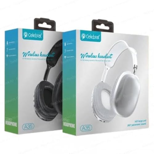 - سماعة رأس بلوتوث لاسلكية ستريو صوت نقي Celebrt A35, سماعات رأس ANC بلوتوث لاسلكية تقنية البلوتوث 5.3 واف ام ومزودة بميكروفون خارجي وتدعم تشغيل بطاقات SD ومدخل صوت AUX