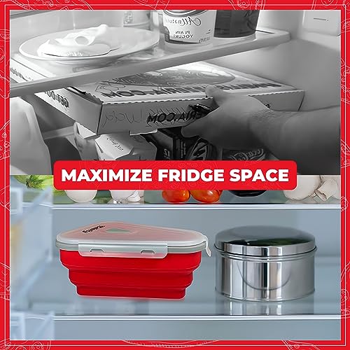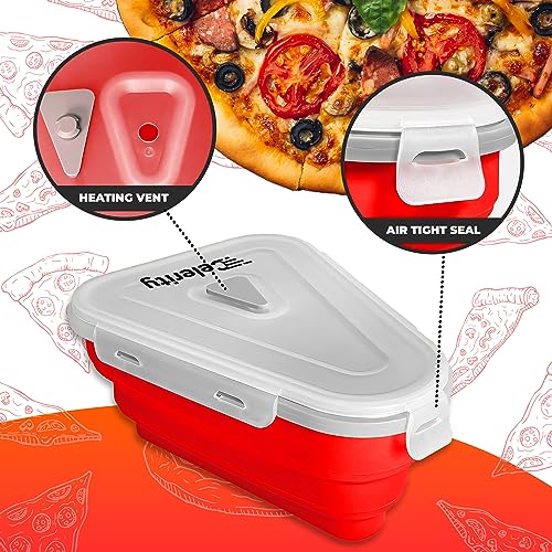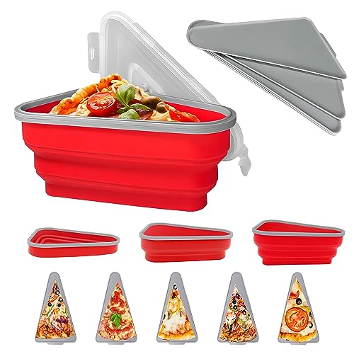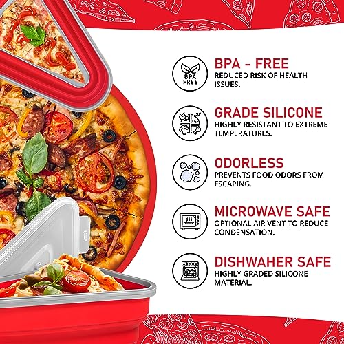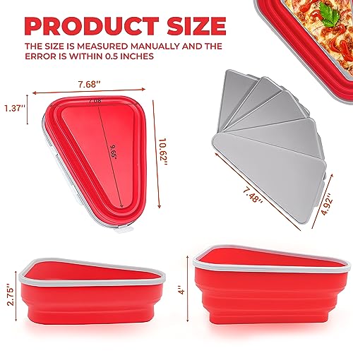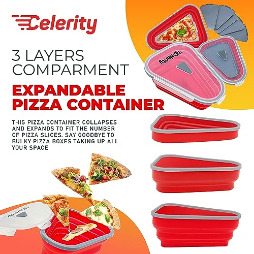 Celerity - علبة تخزين البيتزا من سيليرتي بـ 5 صواني تقديم قابلة للاستخدام في الميكروويف صينية شرائح بيتزا للطي وخالية البيسفينول أ مجموعة علب لإعادة الاستخدام مع أغطية لتوفير المساحة أحمر