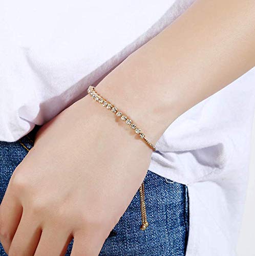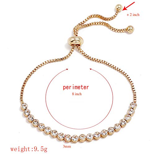 generic - سوار تنس زركونيا قابل للتعديل من سيليست (3 ملم، ذهبي عيار 18 قيراط)