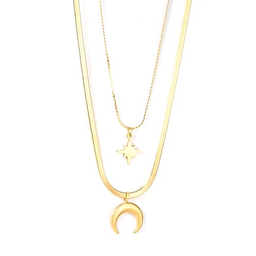 Generic - قلادة سماوية - سلسلة أنيقة متموجة بطبقات مع لمسات ذهبية، مزينة بدلاية القمر والنجمة، هدية رقيقة لكنها قوية للنساء والفتيات.
