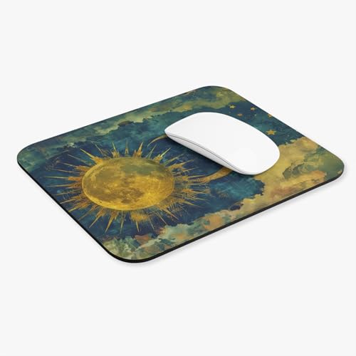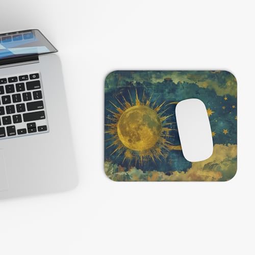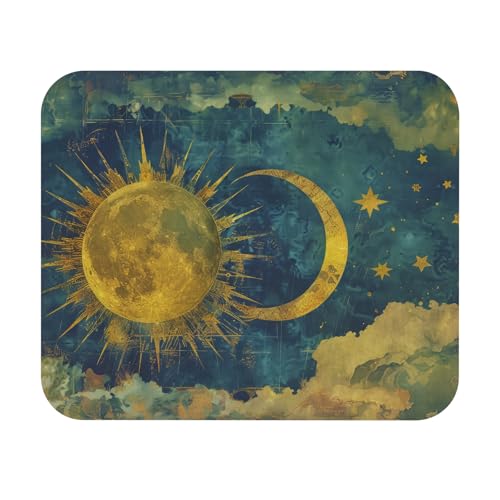 Generic - قاعدة ماوس بتصميم الشمس والقمر السماوي – ديكور مكتب كلاسيكي بلون ذهبي عتيق مع سطح ناعم وقاعدة غير قابلة للانزلاق، بساط مكتب غير قابل للانزلاق للكمبيوتر واللاب توب