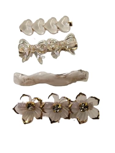 Generic - طقم مشابك شعر سيليستيال اكريليك للنساء - 4 قطع، أبيض