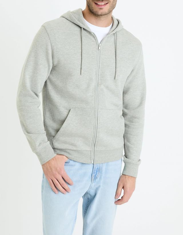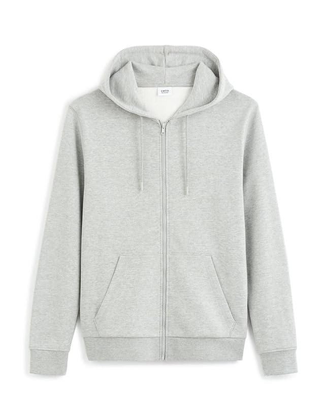Celio - سيليو سويت شيرت بغطاء للرأس وسوستة من مزيج القطن للرجال 1140162، مقاس L، رمادي
