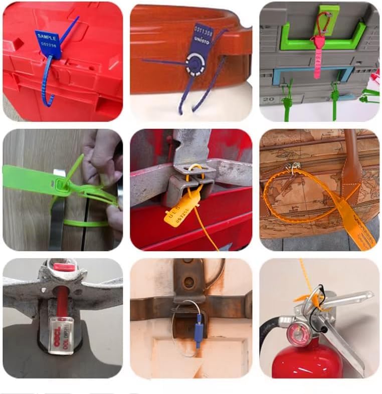 - ✅سدادات إرشادية بنقاط قفل مزدوجة لمزيد من السلامة، اربطة امان مرقمة شديدة التحمل، اربطة بلاستيكية مقاومة للعبث مع ربطة سلكية، ملصق امان لوجستيات نقل الامتعة