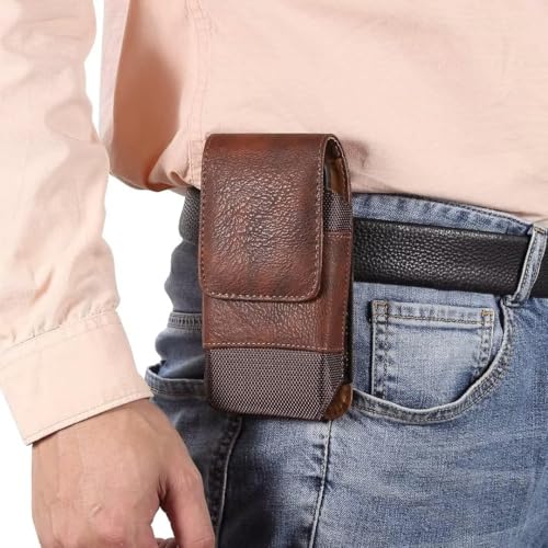 fashion mania - شنطة جلدية بمشبك حزام للرجال، جراب خصر جلدي صغير وعمودي مقاوم للماء، مثالي لحمل الموبايل والمحفظة أثناء الرحلات والمشي، مزود بحلقة إغلاق للحزام، ويناسب الموبايل الذكي الأقل من 17.8 سم