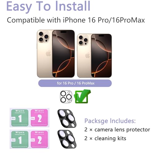 SHANG PIN JIA - واقيات عدسات الموبايل (اسود - عبوة من قطعتين، لموبايل ايفون 16 برو/ايفون 16 برو ماكس)