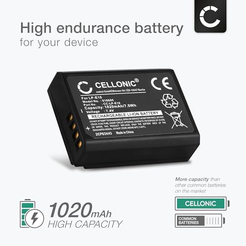 CELLONIC - سيلونيك بطارية بديلة LP-E10 1020mAh لكاميرا كانون EOS 1100D 1200D 1300D 1D X، EOS 2000D EOS 4000D EOS Kiss X50 X70 X80 EOS Rebel T3 T5 T6 بطارية كاميرا اكشن