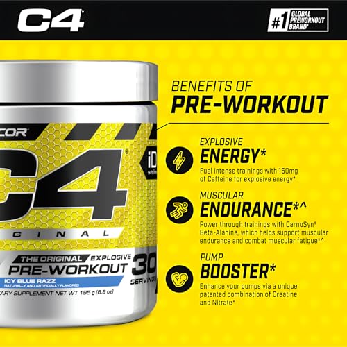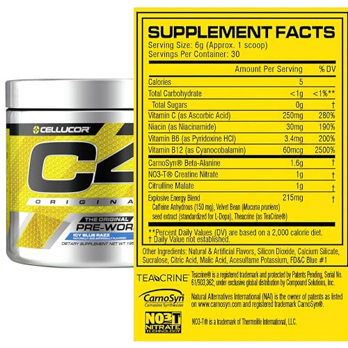 Cellucor - سيليوكور سي 4 اوريجينال ذا اوريجينال اكسبلوسيف بري-اوت ايس بلو راز 30 حصة، مسحوق