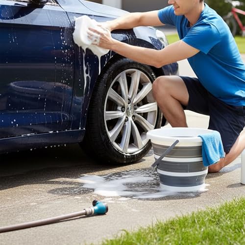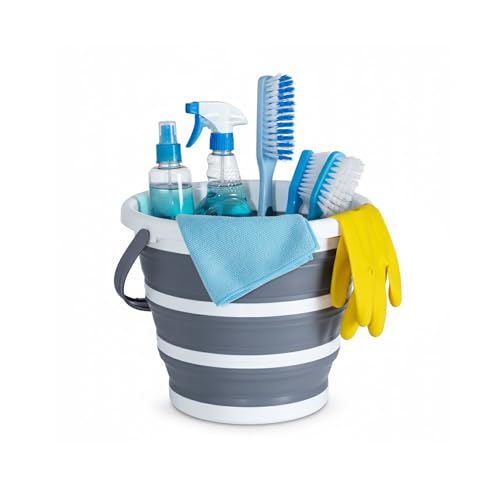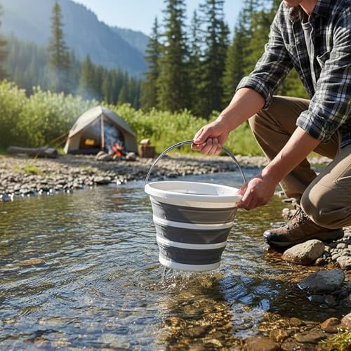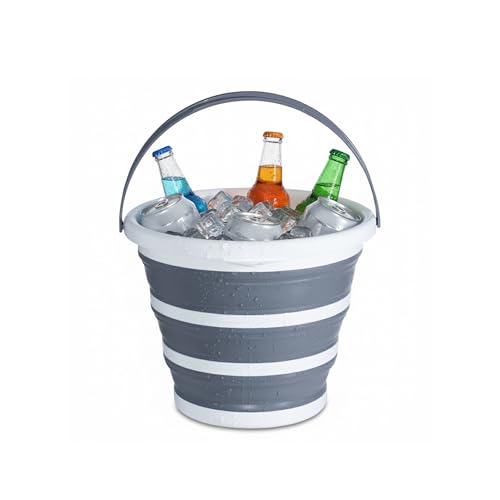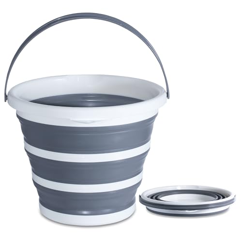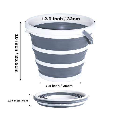 Cemome - دلو قابل للطي سعة 10 لتر من سيموم، حاوية مياه قابلة للطي مع مقبض، دلو محمول خفيف الوزن للتخييم وصيد الاسماك والمشي لمسافات طويلة والسفر والبستنة (رمادي)