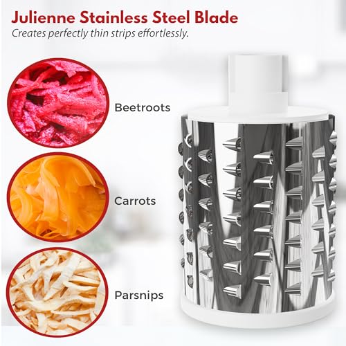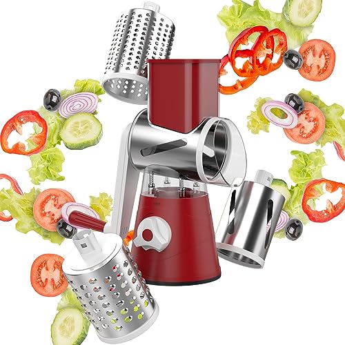 Centaurio - مبشرة جبن دوارة، شفرات 3 في 1 من الفولاذ المقاوم للصدأ، أداة يدوية متعددة الاستخدامات للمطبخ بتصميم مندولين جوليان، قطاعة وتقطيع رائعة للفواكه والبارميزان والخضروات والمكسرات من سنتوريو