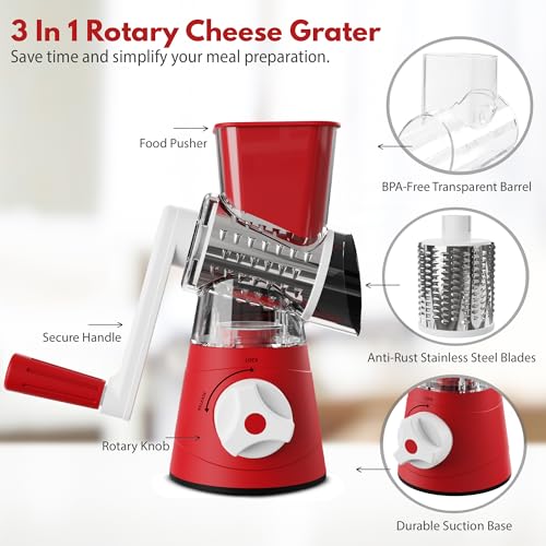 - 🥒🥒 السلامة أولاً - مصنوعة من بلاستيك ايه بي اس ومواد خالية من مادة البيسفينول أ بنسبة 100%، تضمن مبشرة الجبن الدوارة السلامة والمتانة للاستخدام اليومي المكثف. تضمن مرفقات شفرة الأسطوانة الدوارة الثلاثة الحادة المصنوعة من الفولاذ المقاوم للصدأ أداءً موثوقًا يدوم طويلاً.