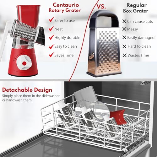 - ️⏳⌛️ وفر الوقت بأناقة - وداعًا للتقطيع الممل ومرحبًا بالتقطيع السريع. لفتان فقط من مبشرة الجبن الدوارة من سنتوريو تعادل إجراء اثني عشر قطعًا يدويًا. أصبح إعداد المكونات والطعام الآن مهمة ممتعة وسريعة وبدون مجهود.