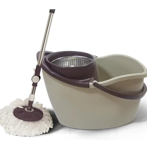 Generic - ممسحة تنظيف دوارة بنظام العصر المركزي - جردل تنظيف مزود بحوض معدني متين ويد معدنية قابلة للتعديل مع رأس دوار 360 درجة وغيار ميكروفيبر إضافي d