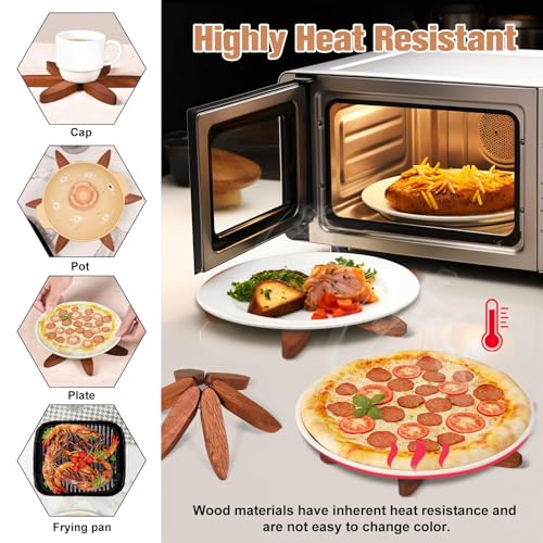 - 【حوامل خشبية للأطباق الساخنة】بفضل تصميمها الزخرفي المزهور، فإنها لا تحمي أسطح الطاولات وأسطح الطاولة من الأواني الساخنة والمقالي فحسب، بل يمكن أن تكون أيضًا بمثابة ديكور للأشجار الطبيعية، وتزين طاولة مطبخك بشكل جميل.