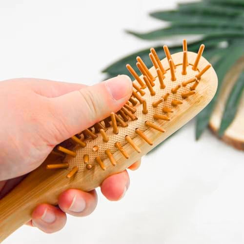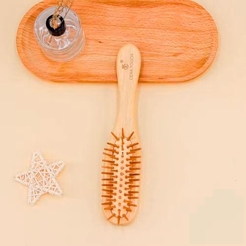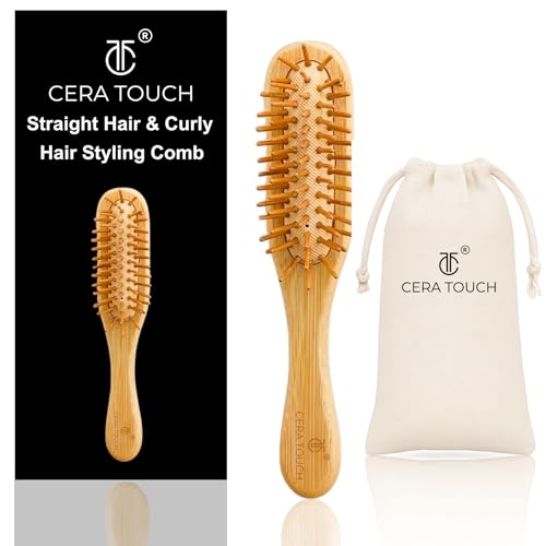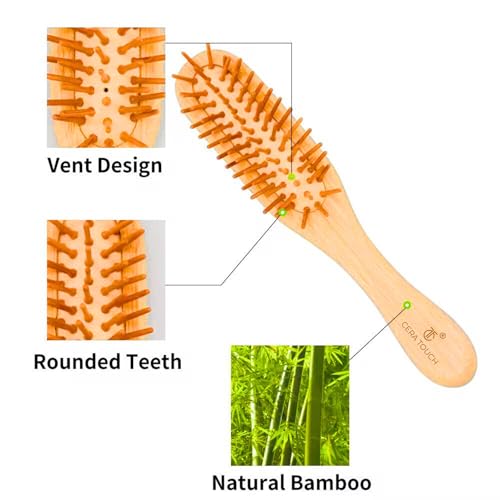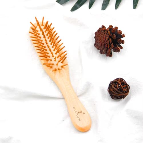 CERA TOUCH - فرشاة شعر صغيرة من البامبو لفك التشابك وتدليك فروة الرأس، فرشاة مجداف خشبية محمولة لشعر ناعم وخالٍ من الهيشان للنساء والرجال والأطفال من سيرا تاتش حجم مناسب للسفر.