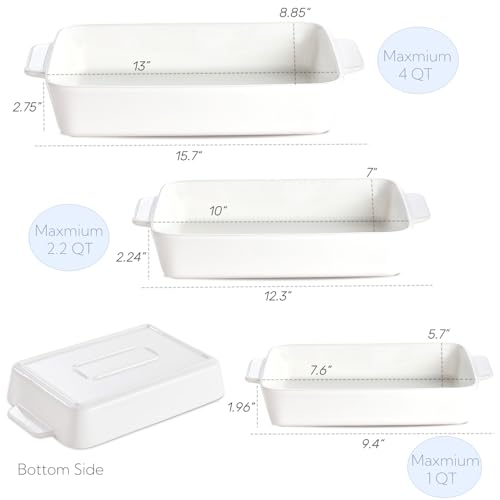 WK WENKRYGDN - مجموعة ادوات خبز من السيراميك، اطباق خبز مستطيلة من البورسلين للمطبخ، صواني لازانيا مع مقبض للطبخ، صينية خبز عميقة للخبز، مجموعة من 3 قطع، ابيض