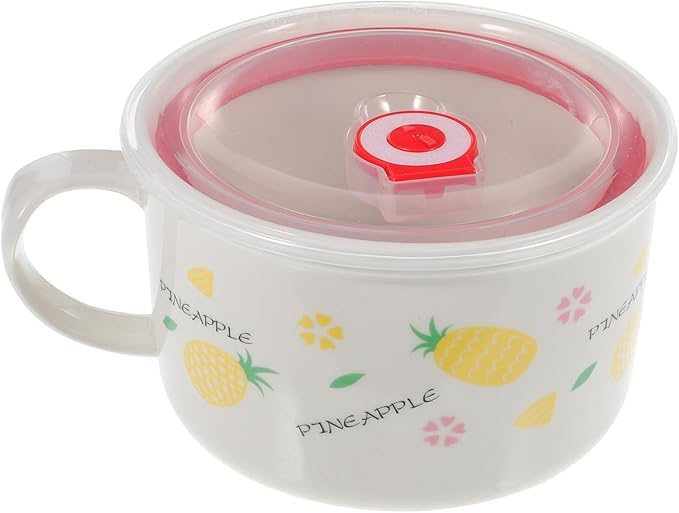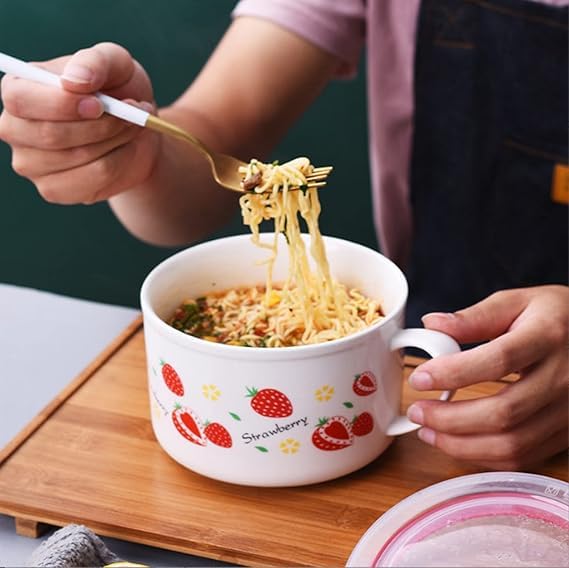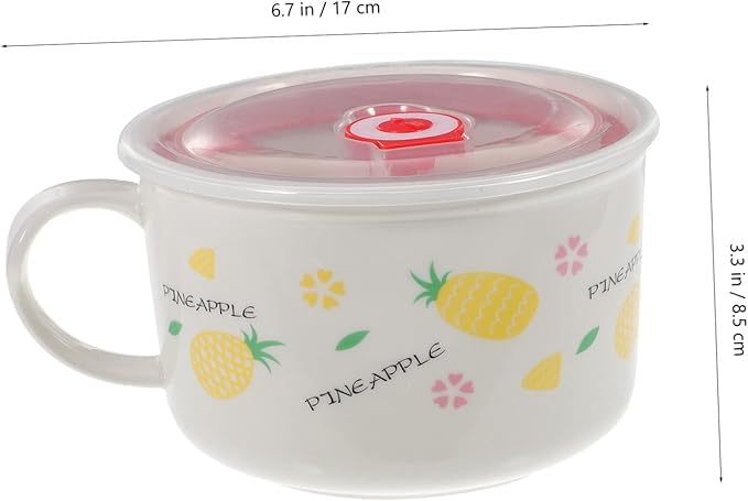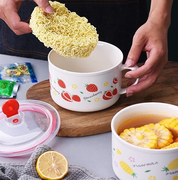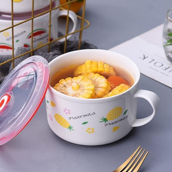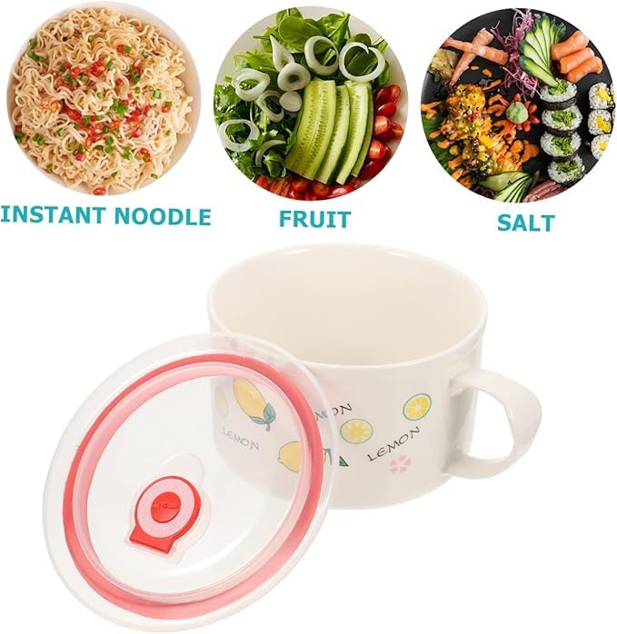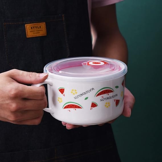 Generic - وعاء سيراميك مع غطاء ومقبض للحفاظ على الحرارة، للحبوب والنودلز الفورية والمكرونة والسلطة، اوعية شوربة، امن للاستخدام في الميكروويف، كوب كبير