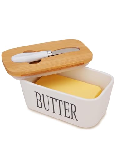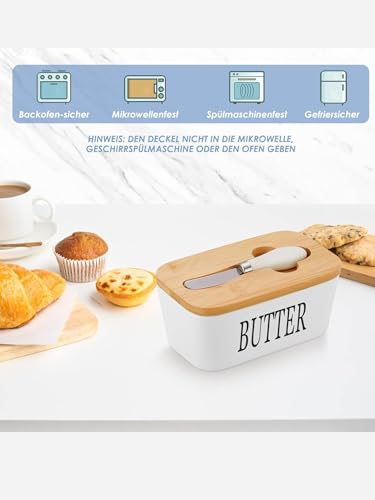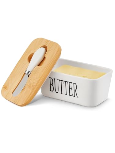 Generic - طبق زبدة سيراميك مع غطاء خشبي وسكين زبدة من تشيسشيك، حامل زبدة بسعة 500 مل، صينية زبدة كبيرة للمطبخ