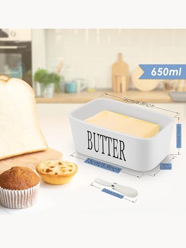 - السعة: طبق زبدة سيراميك كبير سعة 500 مل مثالي لتخزين وتقديم مكعبات الزبدة القياسية