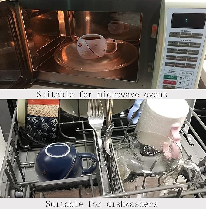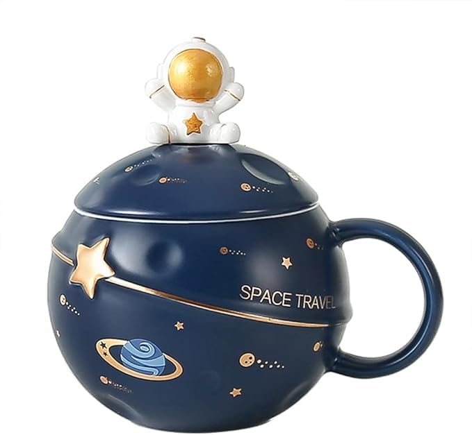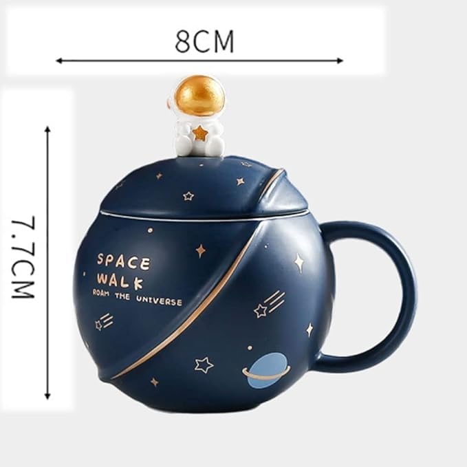 Generic - كوب قهوة من السيراميك بتصميم كوكب مع غطاء ومقبض، مج لطيف مبتكر بتصميم رائد فضاء للقهوة والشاي والحليب سعة 450 مل (ازرق)