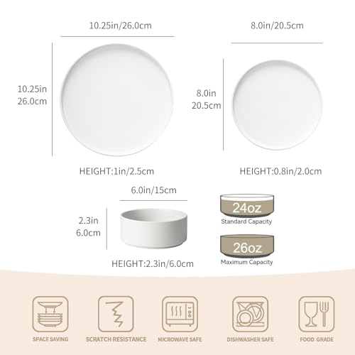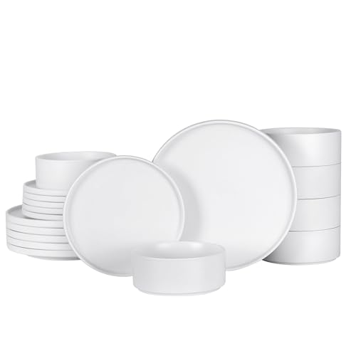 - أدوات مائدة من السيراميك لحمل العديد من أطباق العشاء: تتضمن مجموعة أطباق العشاء المكونة من 18 قطعة 6 أطباق عشاء 25.5 سم و6 طبق سلطة 20 سم و4 بولات حبوب 15 سم للحفلات المختلفة مثل العشاء الرومانسي للأزواج وتجمعات الأصدقاء والعشاء العائلي وما إلى ذلك.