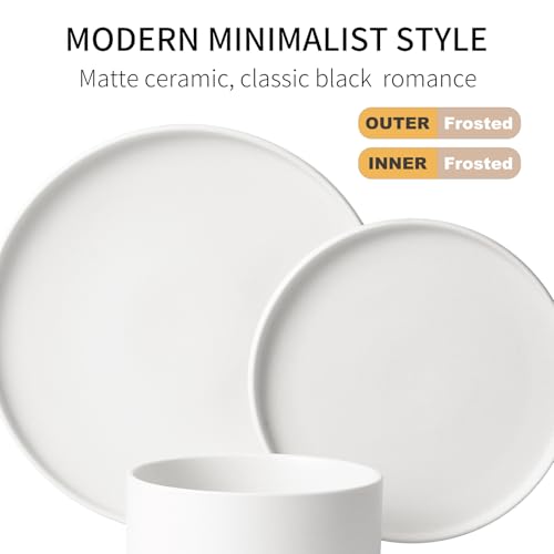 GZG - طقم عشاء من السيراميك بتصميم عصري، طقم أطباق وبولات آمن للاستخدام في الفرن وغسالة الأطباق، أطباق من الفخار قابلة للتكديس ومقاومة للخدش والتآكل، أبيض عاجي، 18 قطعة