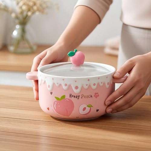 Generic - وعاء طعام سيراميك مع غطاء زجاجي - حاوية كبيرة الحجم للنودلز والفواكه والسلطات، امنة للاستخدام في الميكروويف وغسالة الصحون لسهولة التنظيف. (الخيار 3)