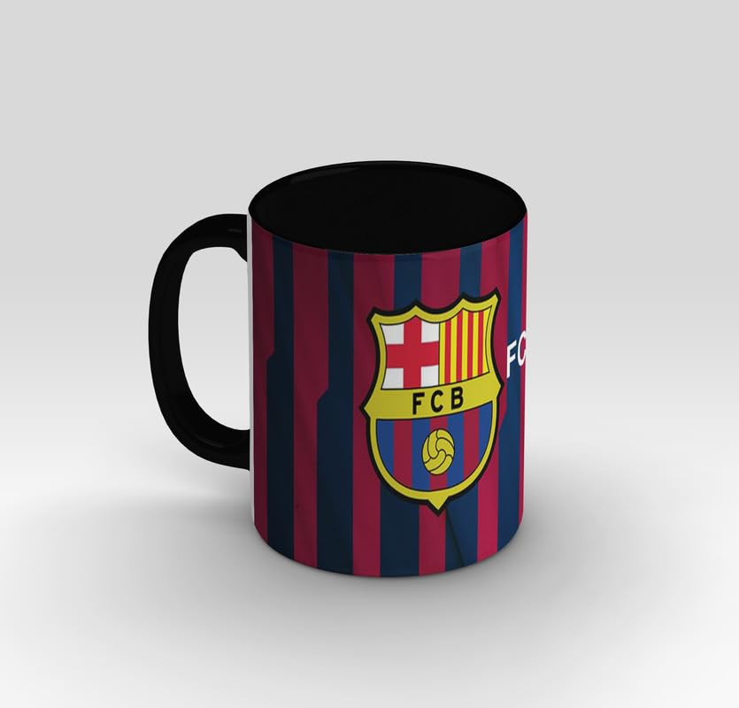 Generic - مج سيراميك بتصميم كرة القدم فريق برشلونة، أسود