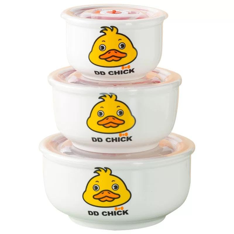 Generic - طقم تخزين ثلاجة سيراميك - 3 حاويات بورسلين قابلة للتكديس مع اغطية تهوية