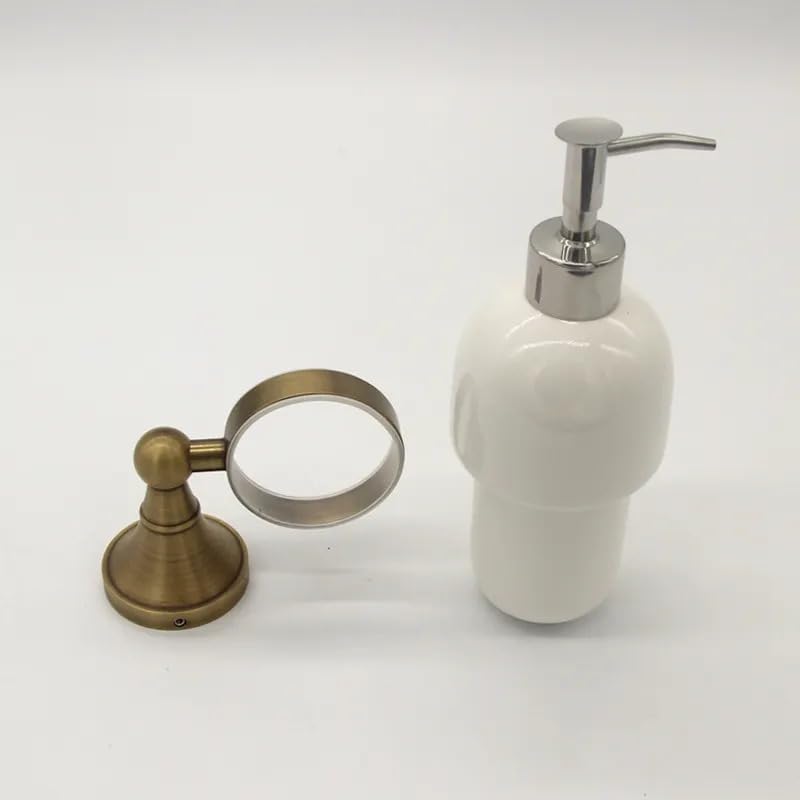 Generic - خزان صابون سيراميك مع حامل برونزي