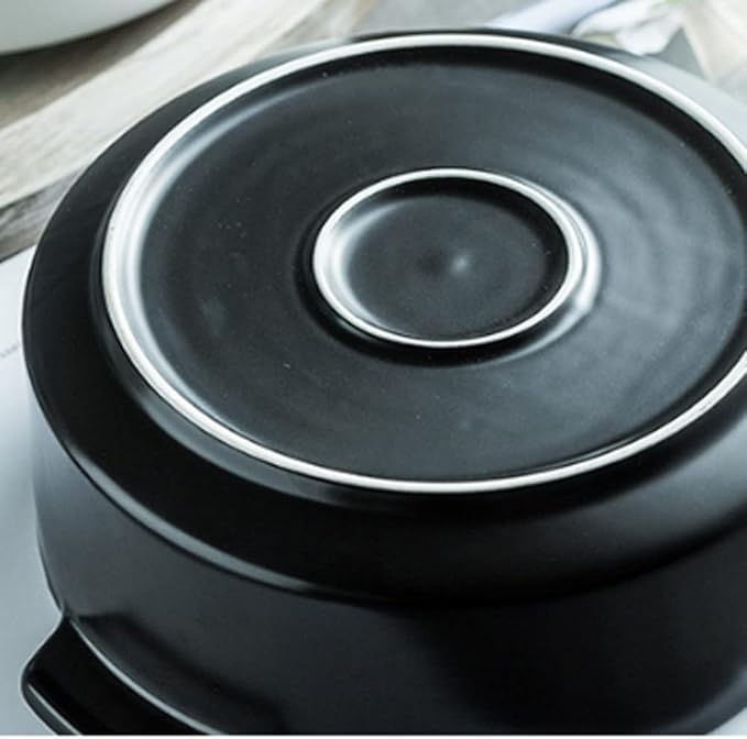 Generic - بولة شوربة سيراميك عميقة وكبيرة بتصميم مبتكر ومقابض مانعة للحروق (E) (أبيض)
