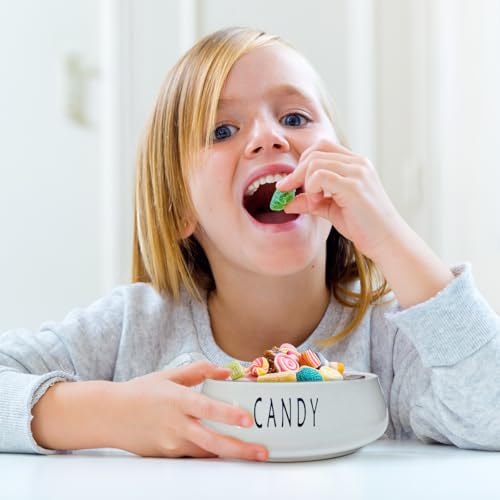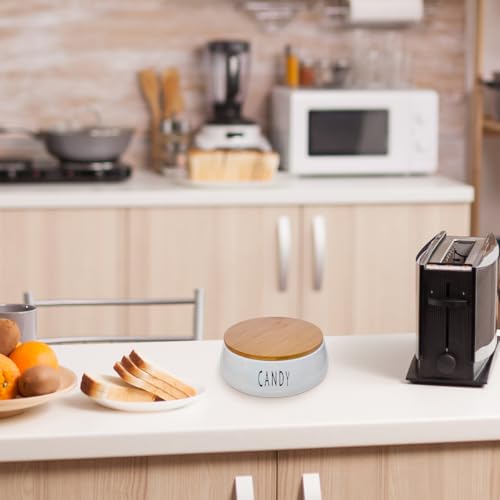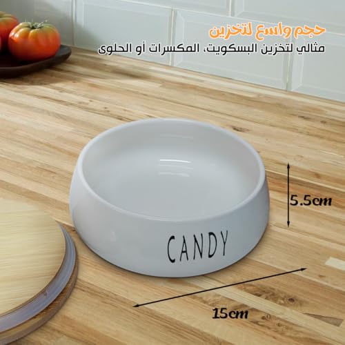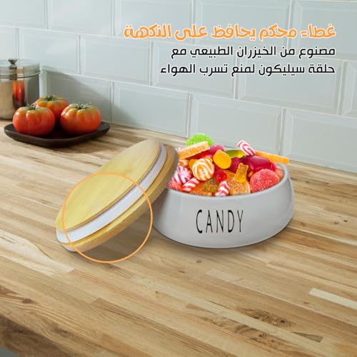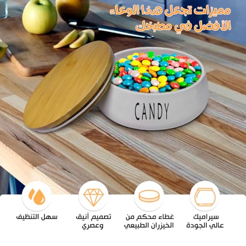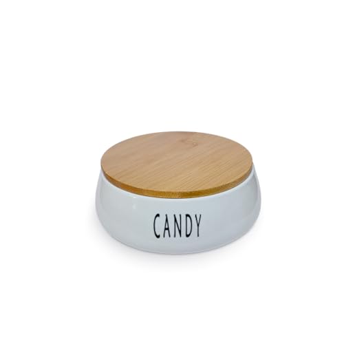 Generic - علبة تخزين مع غطاء من الخيزران - برطمان سيراميك للمطبخ - علبة للحلوى والكوكيز والجبن والبسكويت - علبة سيراميك بتصميم حديث، (1 قطعة، تصميم بكلمة Candy)