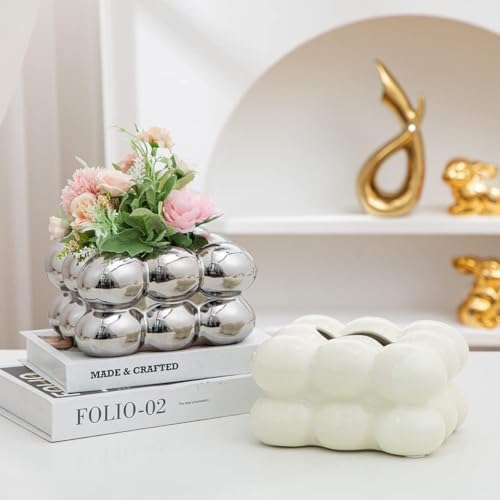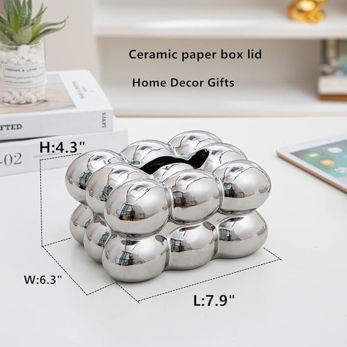 Generic - علبة مناديل من السيراميك، طفاية سجائر، حامل شموع، فازة للحمام، رف ديكور منزلي تجريدي من السيراميك، لون فضي وأبيض وذهبي، (A1105 فضي)