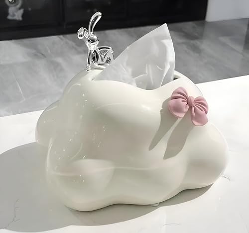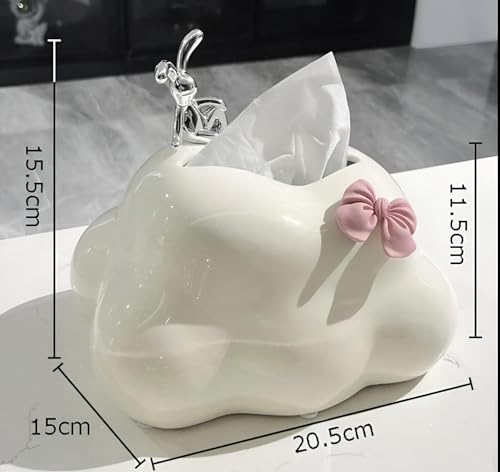 Generic - حامل مناشف سيراميك - حامل مناديل بتصميم ارنب ابيض انيق مع فيونكة بينك ولمسات زخرفية لديكور المنزل الانيق
