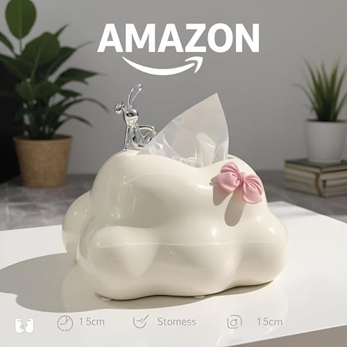 - 1) التصميم: يتميز حامل المناديل هذا بشكل أرنب ساحر مصنوع من السيراميك الأبيض اللامع، يكمله فيونكة وردية رقيقة وتفاصيل فضية، مما يضيف لمسة غريبة وأنيقة إلى أي غرفة.