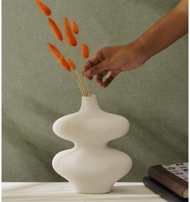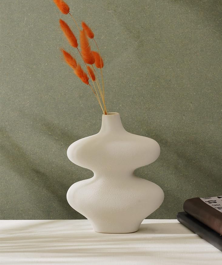 - فازات سيراميك بيضاء ، فازات زهور عصرية مجوفة فريدة من نوعها لديكور المنزل، فازات بنمط بوهو دونات للديكور الاسكندنافي البسيط، ديكور حفلات الزفاف وغرفة الطعام وغرفة المعيشة والمدخل