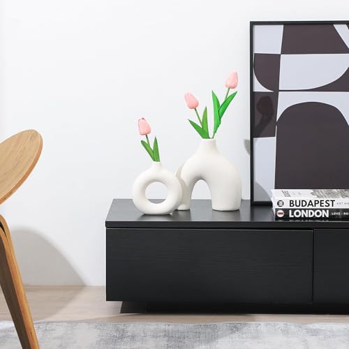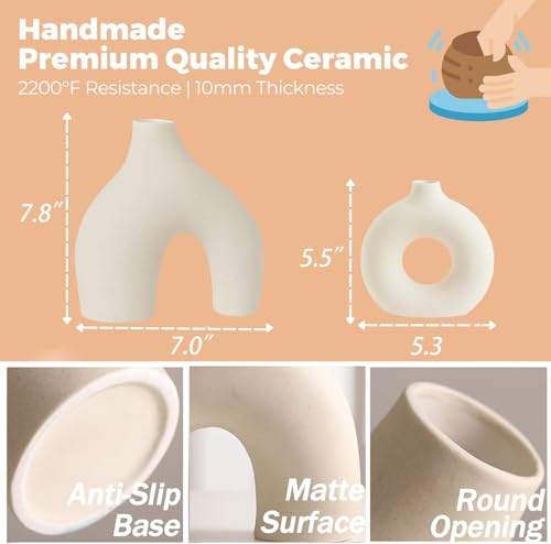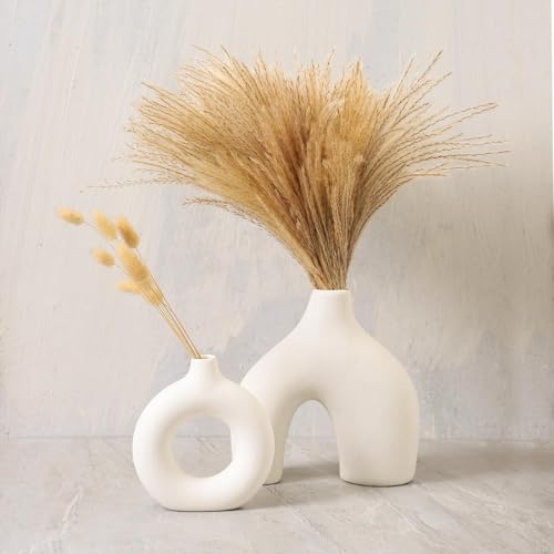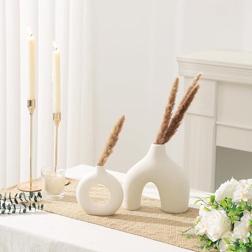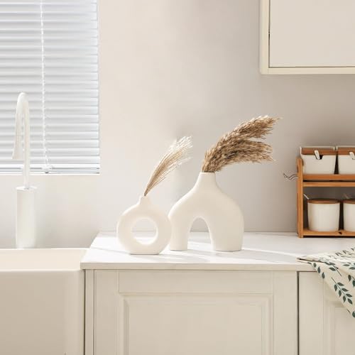 Generic - مجموعة مزهريات سيراميك مكونة من قطعتين، مزهريات دونات بيضاء للديكور المنزلي الحديث، مزهريات بوهو، مزهريات زخرفية على الطراز الاسكندنافي البسيط لغرفة المعيشة، الزفاف، طاولة العشاء، المكتب، المطبخ