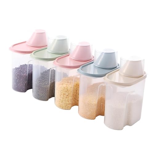 Generic - حاوية حبوب - برطمانات تخزين كبيرة محكمة الغلق للحبوب، مثالية للحفاظ على وجبة الافطار طازجة ومنظمة، مجموعة من 5 خزانات متينة قابلة لاعادة الاستخدام