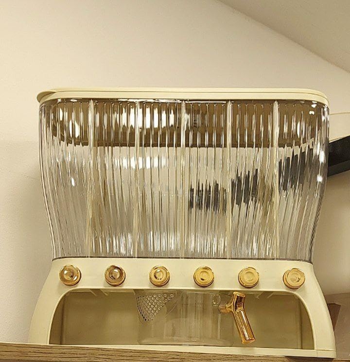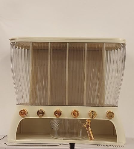 Generic - موزع حبوب ومكسرات بـ 6 أقسام، شفاف مع قاعدة بيج، أزرار ذهبية، حاوية تخزين مطبخ