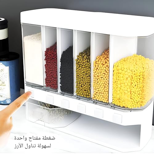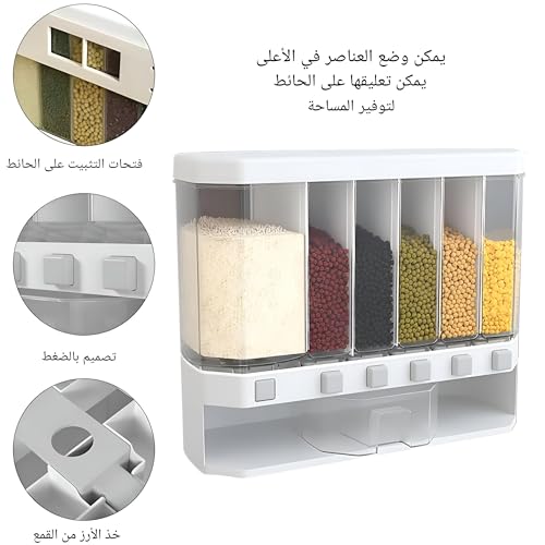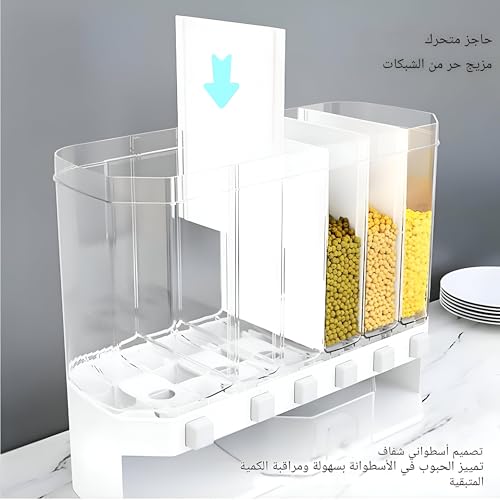 Generic - موزع حبوب - حل تخزين طعام مثبت على الحائط مصمم بذكاء مع فواصل مرنة وقابلة للازالة لقياس دقيق وتوزيع سهل للاطعمة الجافة