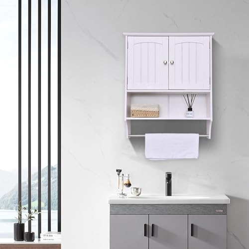 Ceredeme - دولاب حمام جداري مع رف قابل للتعديل وقضيب لتعليق الفوط - موفر لمساحة حمامك، دولاب تخزين يُثبت فوق التواليت من سيريديم