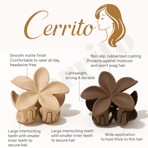 Cerrito - مشابك شعر مخلبية للنساء والبنات من سيريتو - 3 قطع مشابك تثبيت كبيرة قوية للشعر الكثيف والرفيع، مشابك فك غير قابلة للانزلاق، مخلب فراشة محايد، تصفيف، اكسسوارات شعر، حامل ذيل الحصان، متعدد الألوان