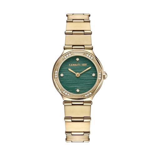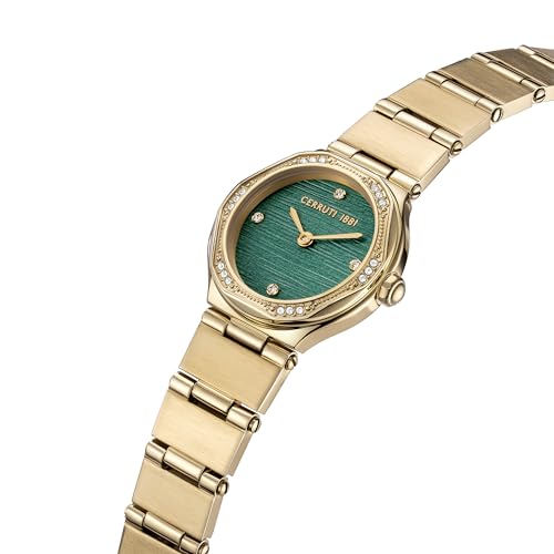 Cerruti 1881 - شيروتي 1881 ساعة انالوج للنساء من ريندينارا بمينا اخضر وسوار ستانلس ستيل ذهبي مقاس 28 ملم