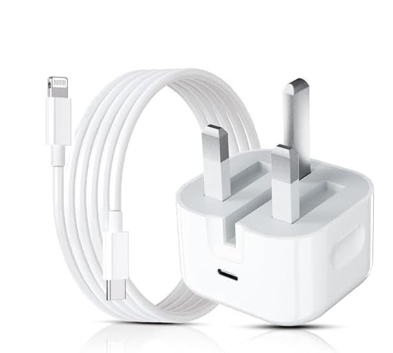 - شاحن USB نوع سي ثلاثي معتمد بقدرة 20 واط مع كابل يو اس بي نوع سي بطول 6 قدم لـ 14/13/12/11/XS/XR/X/ايباد - ايربودز برو - ابيض